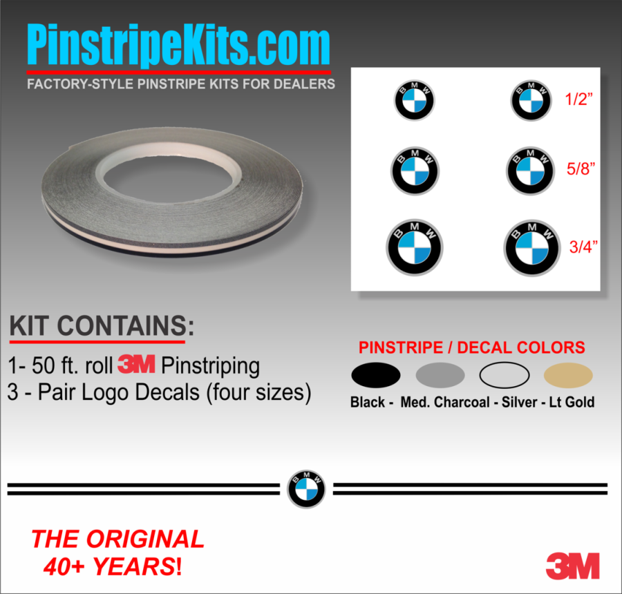 BMW LOGO Pinstripe Kit 2 Raised 3D Urethane Domed $35