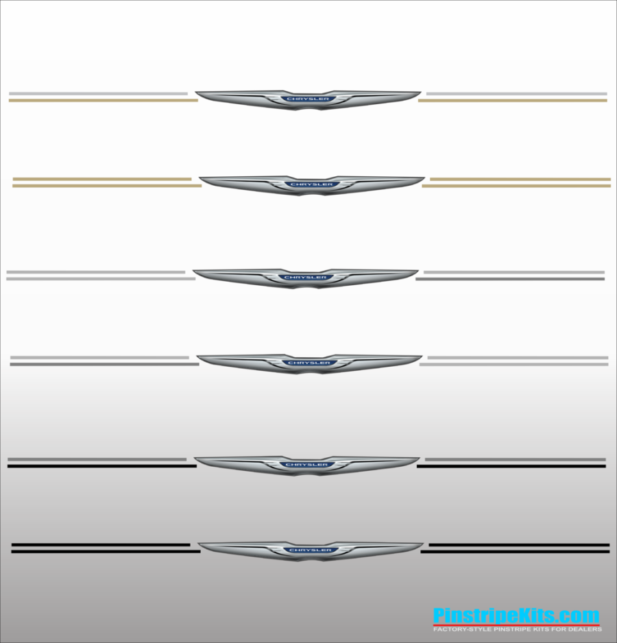 These Chrysler 300, Chrysler 200, Chrysler Pacifica, and Chrysler Town & Countrytruck suv - vinyl logo graphic decal stripe / pin-striping kits can help sell your vehicles more quickly - by making them more visually appealing and attractive, through the modest highlighting provided through the use of timeless pin-striping / pin striping of car, vehicle, and truck vinyl graphics and decals.