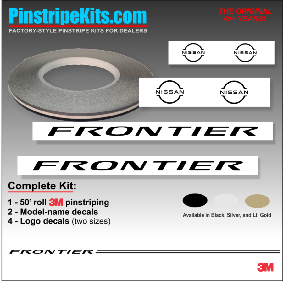 Nissan Altima Maxima Versa Xterra Pathfinder Titan versa Frontier Rogue Pathfinder Murano vinyl pinstripe emblem stripe logo decal graphic Nissan Frontier Vinyl Stripe - 3M Pinstripe Kit with Logo Emblem Decals