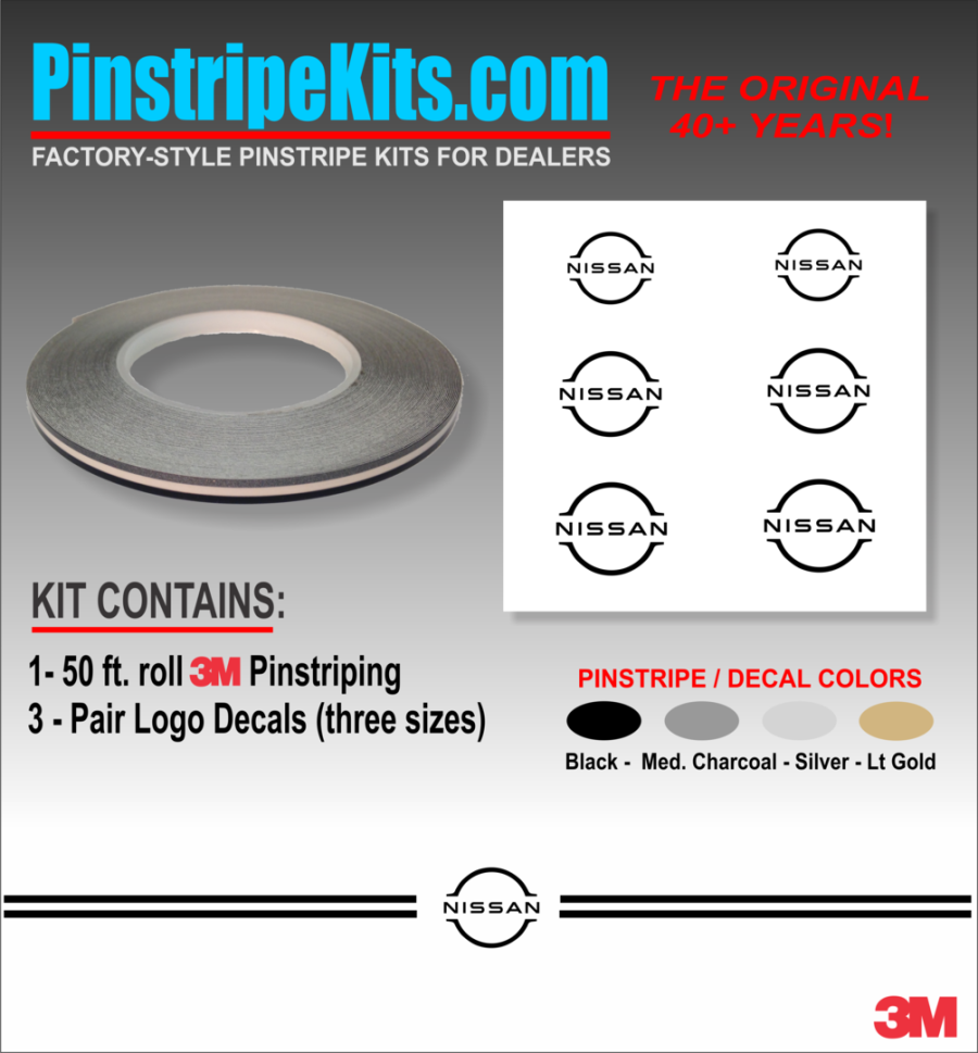 Our designing, constructing, and installing quality factory-style vinyl striping and pin-striping kits, emblems, and logo graphic decals for new and used car dealers and individuals for over 34 years, utilizes quality 3M pin-striping and premium OEM grade vinyls.