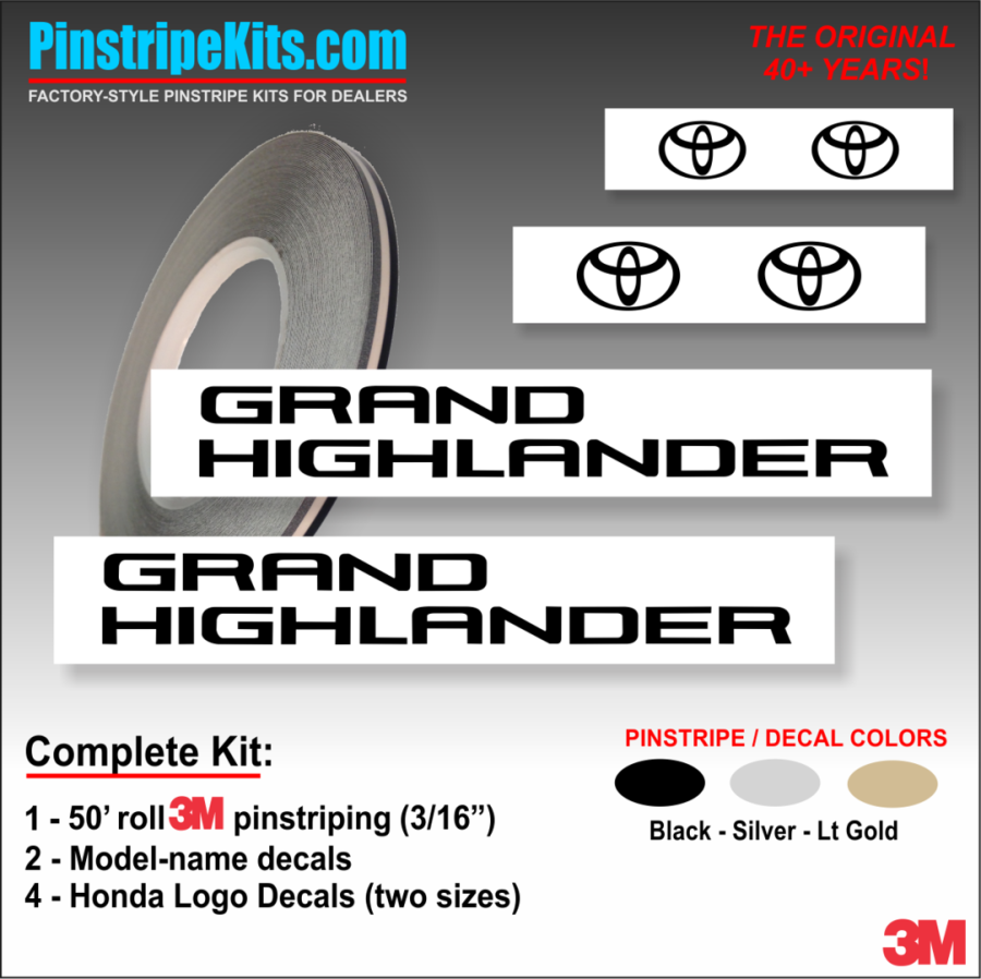 Our designing, constructing, and installing quality factory-style vinyl striping and pin-striping kits, emblems, and logo graphic decals for new and used car dealers and individuals for over 34 years, utilizes quality 3M pin-striping and premium OEM grade vinyls.