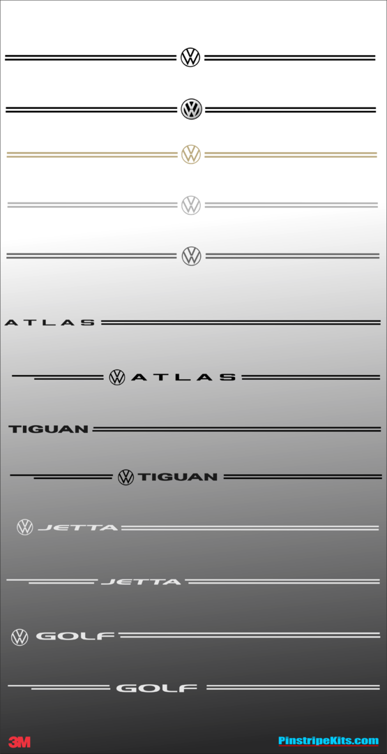 These pinstripe / pinstriping vinyl decals, stickers, logo , emblem and graphics can make your VW Volkswagon Jetta, VW Volkswagon Atlas, VW Volkswagon , VW Tiguan, Passat, Volkswagon VW Beetle, Volkswagon Golf - look more appealing.